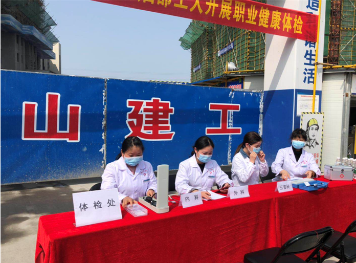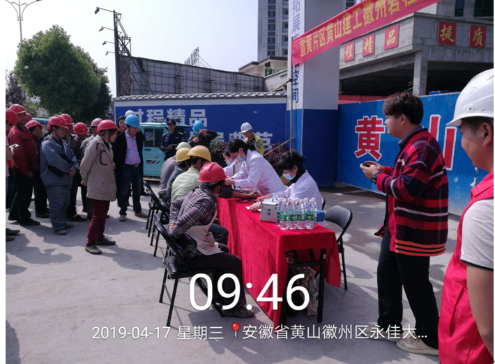 2019年4月17日上午9時(shí),黃山建工集團(tuán)承建的徽州碧桂園德源項(xiàng)目工程?hào)|大門(mén),人聲鼎沸、歡聲笑語(yǔ),每個(gè)人臉上都洋溢著幸福的笑容,他們排著隊(duì),有組織、有秩序地參加由碧桂園德源工程施工項(xiàng)目部組織的“關(guān)愛(ài)健康、免費(fèi)體檢”活動(dòng)。此次體檢活動(dòng)邀請(qǐng)了屯溪同仁門(mén)診部的四名醫(yī)生,分科體檢,對(duì)每位職工的心率、血壓、外科、口腔等做了細(xì)致的檢查,并做好體檢記錄,同時(shí)對(duì)工友們關(guān)心的日常生活問(wèn)題、常識(shí)做了解答和溫馨提示,此次項(xiàng)目部參加體檢人員惠及95名。本次活動(dòng)是為了增強(qiáng)員工關(guān)懷,保障員工身體健康,營(yíng)造”平安、和諧、幸福、美麗”的示范工地。