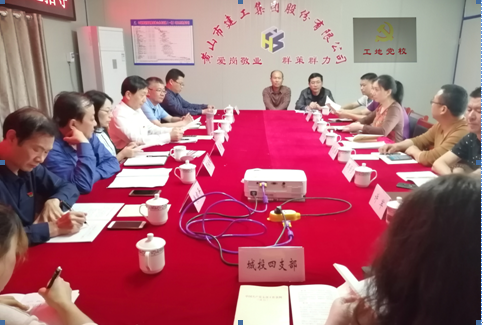 朱書記一行人員一到工地,就奔赴施工現(xiàn)場調研,并認真聽取了項目施工情況的介紹,他要求在確保安全的前提下要加大施工機械設備投入,加班加點,合理安排工序銜接,保質保量的加快施工進度,盡早為業(yè)主提供一個滿意的工程。隨后步入“工地黨?!边M行了交流座談,先后聽取了“工地黨?!苯M織情況介紹、項目建設情況介紹、項目施工情況介紹等。朱書記以《中國共產(chǎn)黨支部工作條例(試行)》為黨課內容進行了專題講座。