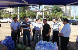 烈日下的八一大橋項(xiàng)目現(xiàn)場一片繁忙景象,工人們有的在支模、有的在焊接鋼筋、有的在澆筑砼,一切都井然有序,忙而不亂。屯溪區(qū)區(qū)委書記江善良一行一到現(xiàn)場,就將一件件防暑降溫慰問品遞到在施工的工人們手中,并囑咐在高溫下施工的操作人員要多注意休息、及時(shí)補(bǔ)充水分和營養(yǎng),按項(xiàng)目部要求合理安排工作時(shí)間,避免中午高溫時(shí)間段施工,同時(shí)要求項(xiàng)目部積極做好防暑降溫工作,保障施工一線工人的生命安全。充分體現(xiàn)了屯溪區(qū)委、區(qū)政府等領(lǐng)導(dǎo)對我集團(tuán)公司的一片深情厚誼和關(guān)懷。