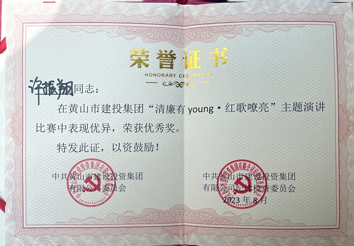 為慶祝中國共產黨成立102周年,深入推動學習貫徹習近平新時代中國特色社會主義思想主題教育,全面貫徹落實黨的二十大精神,8月18日,由黃山建投集團舉辦的“清廉有young·紅歌嘹亮”主題思政課隆重舉行,參賽選手以生動的語言、動聽的歌聲、真摯的感情為大家?guī)硪粓鰟e開生面的視聽盛宴,黃山建工集團青年員工許振翔在思政課演講比賽中取得優(yōu)勝獎。