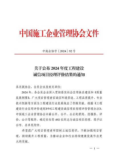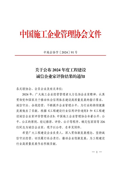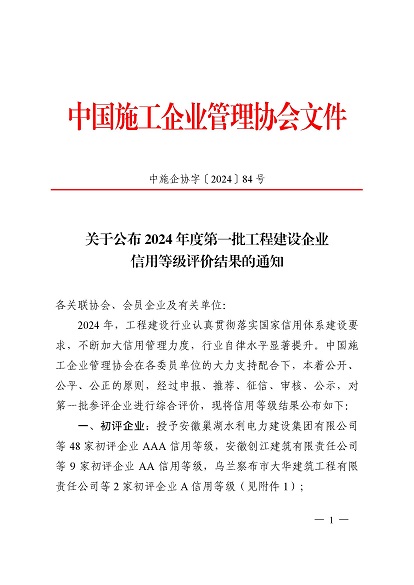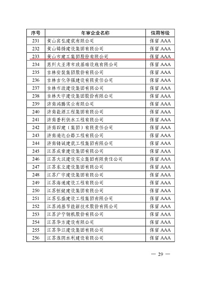 近日,中國施工企業(yè)管理協(xié)會公布了2024年度第一批工程建設企業(yè)信用等級評價結果的通知、工程建設誠信企業(yè)家評價結果、工程建設誠信項目經(jīng)理名單。黃山建工集團順利通過AAA級信用企業(yè)的年審,繼續(xù)保持AAA信用等級的殊榮。黃山建工集團總經(jīng)理葉金發(fā)獲評誠信企業(yè)家,項目經(jīng)理畢星豪獲評誠信項目經(jīng)理。此次榮譽是對黃山建工集團在工程建設領域的綜合實力和誠信經(jīng)營的高度認可。